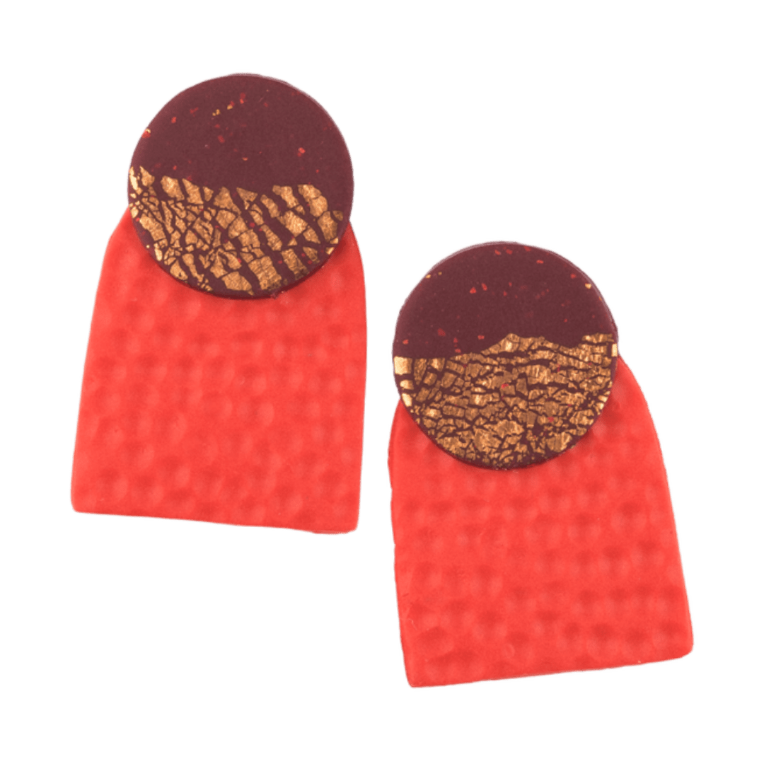 This commanding design features a bold, textured base that grounds the piece, while the contrasting upper Disc—accented with striking, shattered copper leaf—represents the glorious, blazing energy of the sun at its highest point. Wear The Solstice Stud as an everyday reminder that you are operating at your zenith. These are not just earrings; they are wearable confidence for every day you conquer.